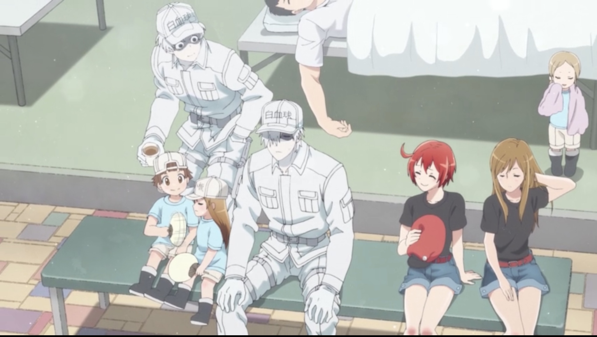 Strenuous activity such as running produces sweat that cools the body down. However, when sweating stops functioning, the person suffers from heat stress where the body continues to heat up. This leads to symptoms such as dizziness, obscured vision and fainting as the body struggles to function normally. Over two separate episodes, heat stress was resolved in two different ways. In episode 11, the cells are saved by an injection of intravenous fluid into the body. However, in a special episode aired exclusively in Japan, the cells are saved by Pocari Sweat, a Japanese sports drink.